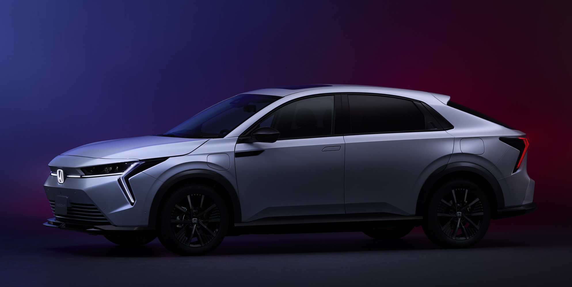 新型INSIGHTは、際立つ存在感を放ち、圧倒的な心地よさを持つ“個性派EV”として開発されました。個性が一目でわかる外観は、シャープで伸びやかな造形で力強い躍動感を演出し、街中で自然と視線を集めるデザインを目指しました。室内空間においては、ドライバーだけでなく同乗者にとっても快適でリラックスできるパッケージとデザイン、さまざまな快適装備による上質な空間価値を提供します。また、Hondaならではの操る喜びや軽快な走りを提供しながら、航続距離はWLTCモード※1で535kmを実現するなど、日常の通勤や買い物から休日のドライブまで幅広いシーンをカバーします。